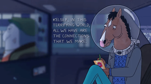 Cela dit, elle rappelle l’importance de l’entourage : quand BoJack gaffe, il appelle son agent Princess Carolyn, se confie à Diane, se défoule sur Mr. Peanutbutter et rit avec Todd. Il n’est pas un personnage très sain, mais il peut compter sur les siens.