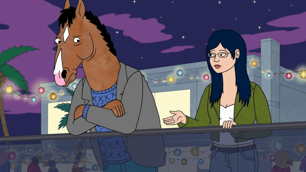 Petit disclaimer : le mélange humains/animaux est souvent bizarre et parfois même dérangeant dans les relations interespèces, mais bon… vous avez grandi avec Disney. Ce n’est pas plus bizarre que La Belle et la Bête. Vous vous habituerez rapidement à voir une baleine présenter le journal télévisé et BoJack être en couple avec une chouette.