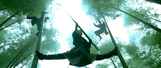 Côté narration, c’est un film très marqué par le cinéma dont il est l’enfant : un film hongkongais par excellence, mais avec beaucoup plus de moyens que d’habitude. Les Chinois appellent ce genre le Wu Xia Pian (la mise en scène cinématographique du genre littéraire wu xia, aka les histoires de chevaliers errants) ; on appellera ça plus vulgairement « un film de sabre chinois ». Comme Tigre et Dragon — qui met aussi en scène Chow Yun-Fat — ou Le Secret des poignards volants, on est face à des scènes de combats acrobatiques où le temps se distord, offrant ralentis et accélérations en permanence, ce qui accentue le côté technique de chaque affrontement. De même pour les batailles totalement épiques, très élémentaires dans les couleurs et l’apparence des corps armées.